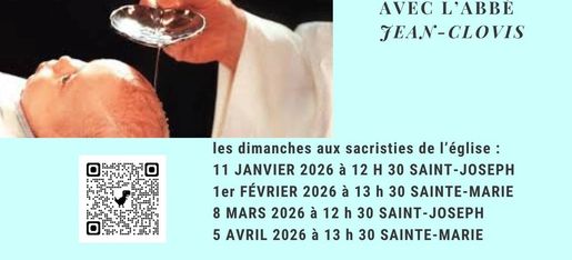 Rencontre mensuelle de discernement de baptême avec l'abbé Jean-Clovis, dimanche12 avril 2026 à 13 h 30 sacristie église de Sainte-Marie